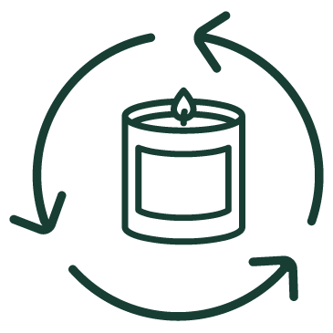 Toutes nos bougies sont proposées dans un verre artisanal bullé de couleur et une boîte carton ronde tous deux recyclables. Nous vous suggérons de garder les gobelets de verre et leur couvercle pour les réutiliser élégamment dans la maison une fois la bougie consumée.
