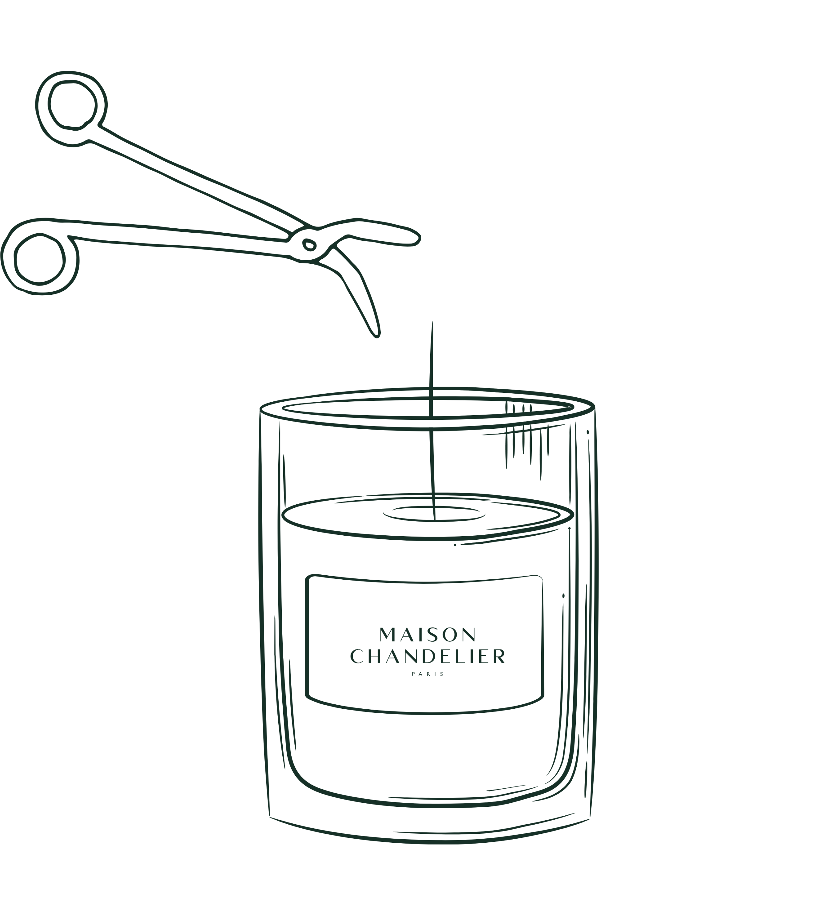 Coupez régulièrement la mèche à 4mm de la cire pour éviter que la bougie ne fume.